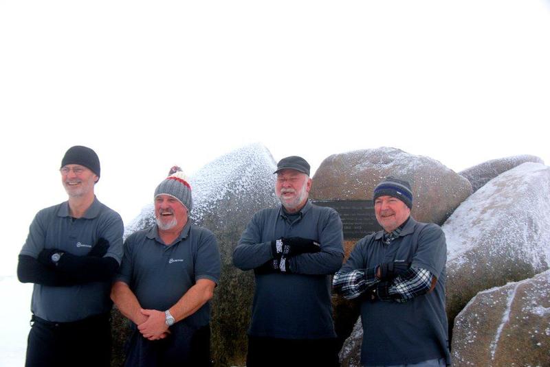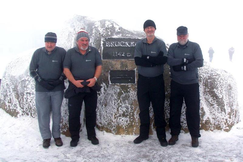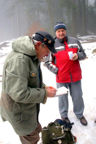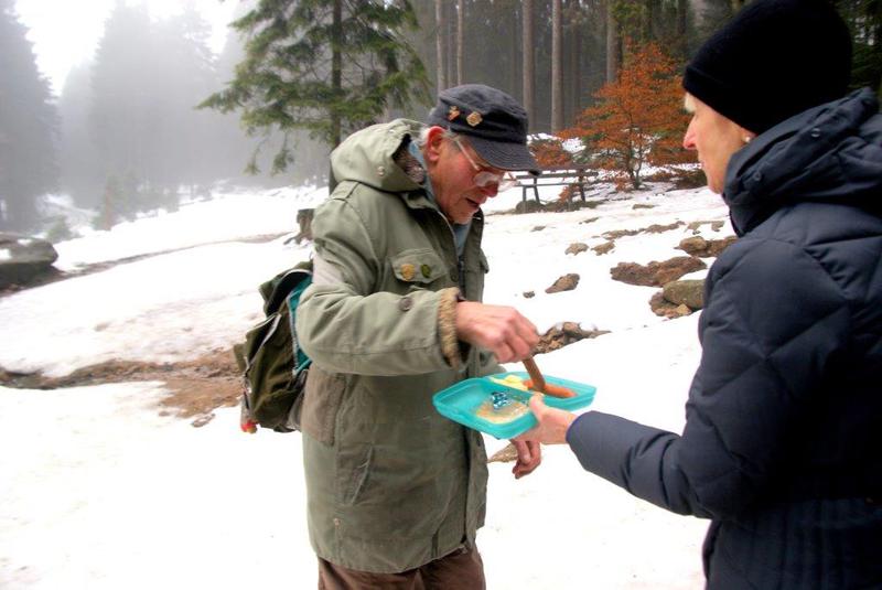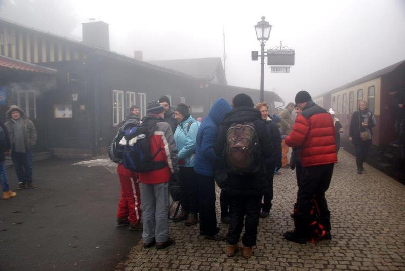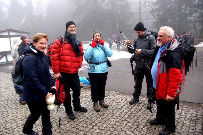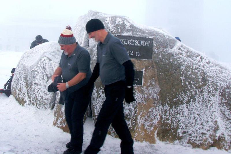 In diesem Jahr gab es zur Abwechsung unterwegs mal wenig Schnee, dafür aber einige sehr vereiste Stellen. Wir haben beim Aufstieg wieder Brocken-Benno getroffen, der gerade seine 8381. (in Worten: achttausend-dreihundert-einundachzigste) Gipfeltour beendete.