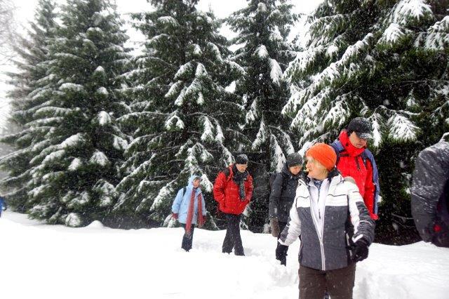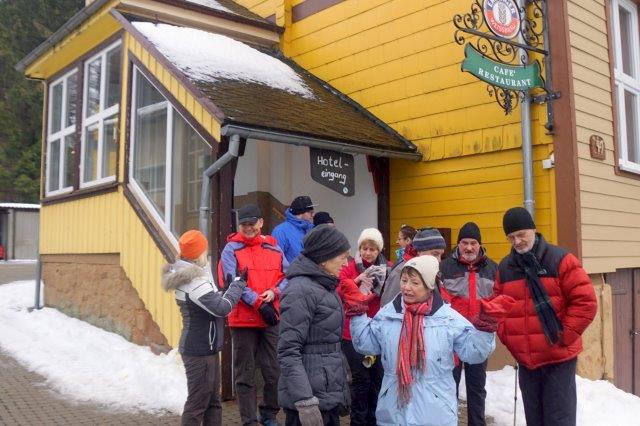 In diesem Jahr war wieder einmal der Wanderweg ab Bahnhof Schierke wegen gehörigen Schneefalls nicht begehbar. So stapften wir anfangs über "Omas Rodelbahn" im Gänsemarsch bergan um dann auf der Brockenstraße unser Ziel zu erreichen.