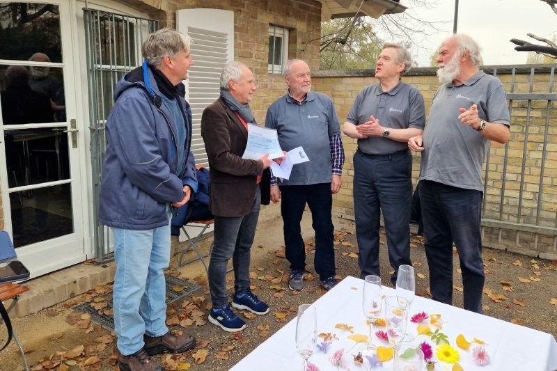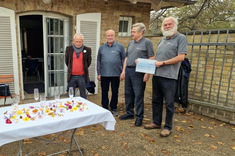 Von unserer Seite nahmen Preuße und Ulli als Vorstandsmitgieder sowie Rolli teil. Von den Freunden der Freundschaftsinsel nahmen deren Vorsitzender Jörg Näthe und der Inselgärtner Thoralf Götsch den Scheck entgegen.