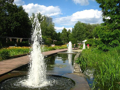 1937 bis 1940 wurden von Karl Foerster und Hermann Mattern Schau-, Lehr- und Sichtungsgärten für winterharte Blütenstauden, Farne und Gräser auf der Insel angelegt. In den 1950er Jahren begleitete Karl Foerster die Neuanlage des Schau- und Sichtungsgartens und Walter Funcke ergänzte die Anlage durch eine Wasserachse mit Fontänen, Pflanzbecken sowie Sumpf- und Uferzonen.
